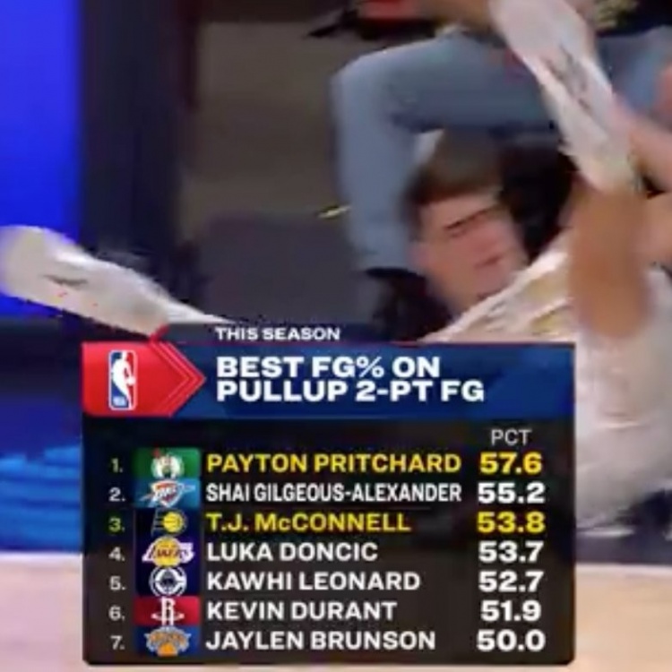 凯尔特人VS步行者,转播方给出两张普里查德的图记,图一: